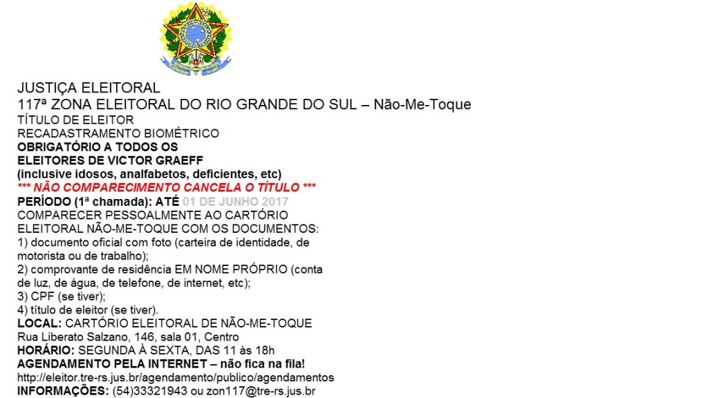 INFORMAÇÕES: (54)33321943 ou zon117@tre-rs.jus.br