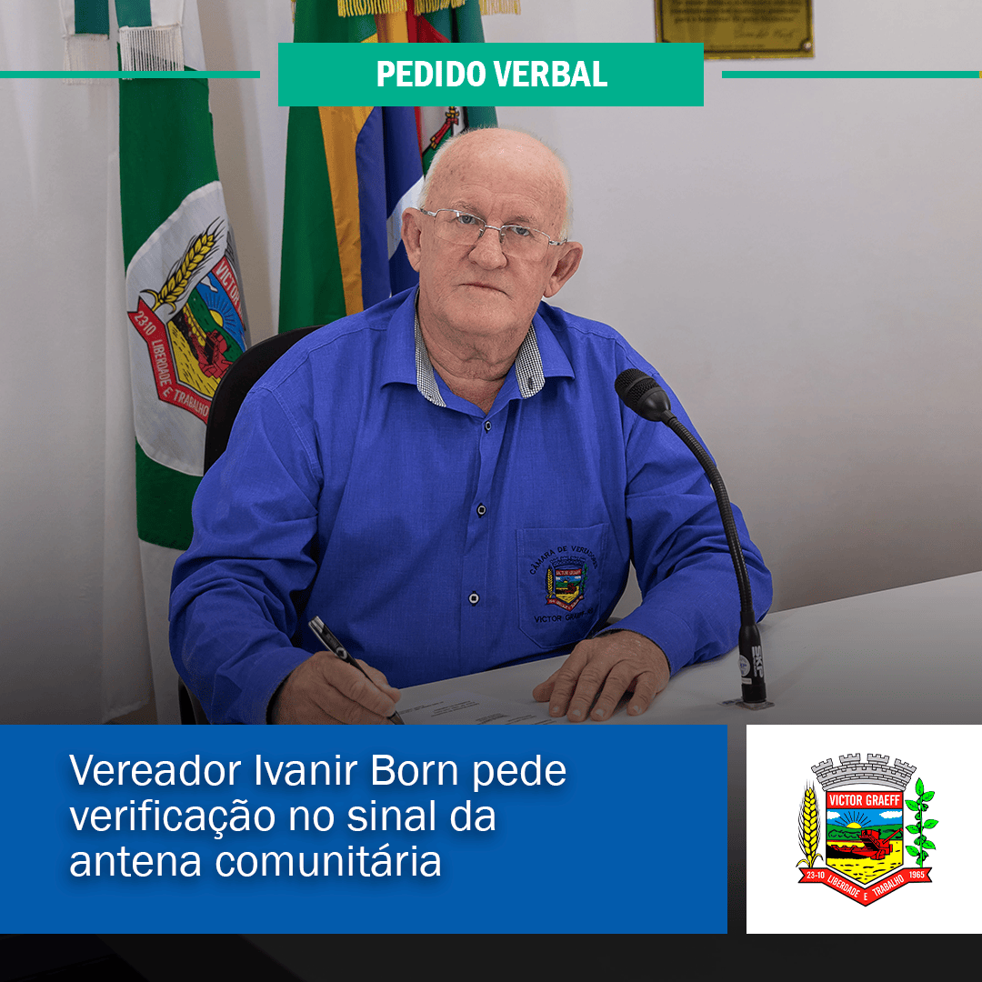 No espaço dos pedidos verbais da sessão ordinária da Câmara Municipal de Victor Graeff de segunda-feira, 23 de março, o vereador Ivanir Urbano Born (PDT) solicitou que a Prefeitura verifique o funcionamento dos sinais transmitidos pela antena comunitária, com atenção especial ao sinal da Rede Globo, que tem apresentado instabilidades.
