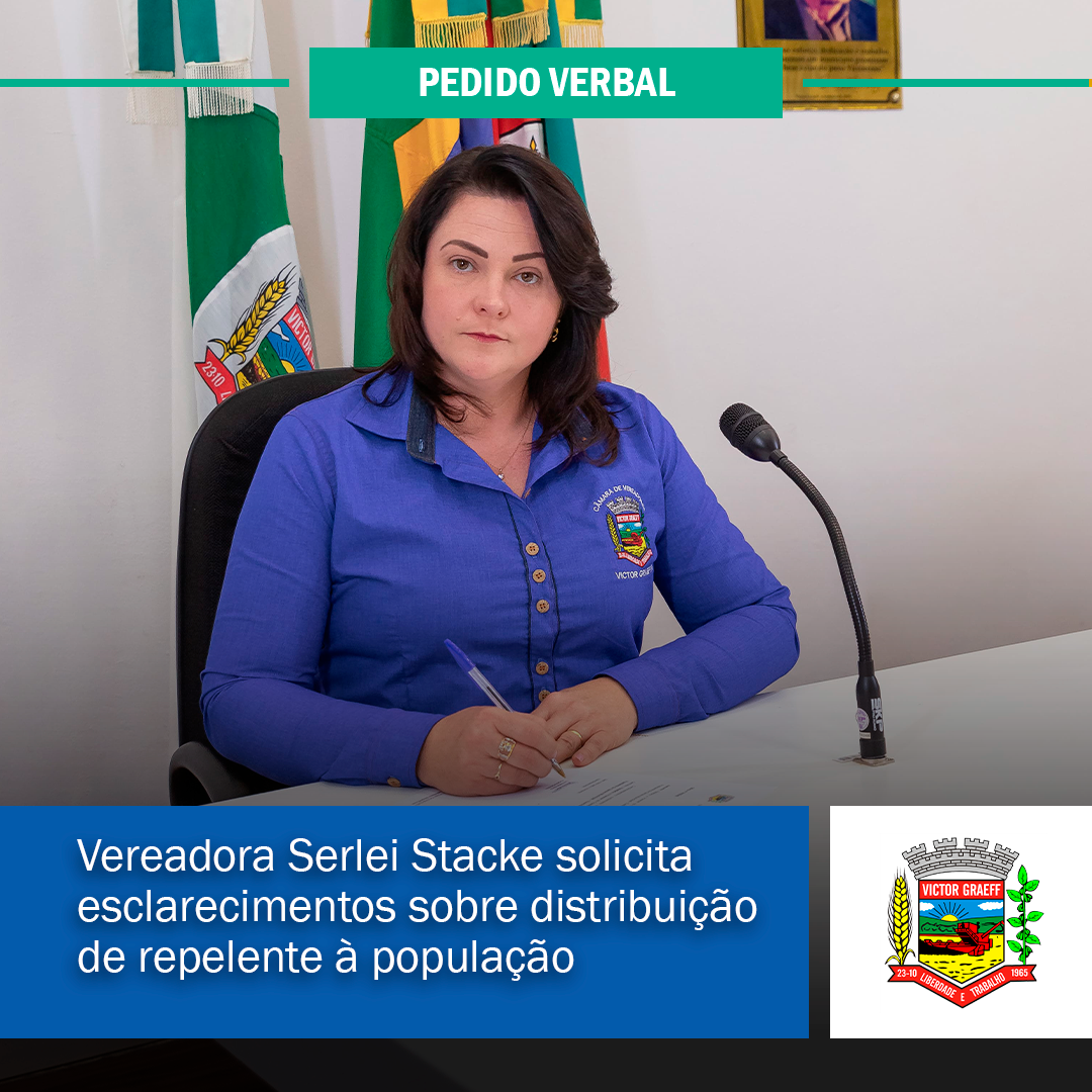 • Vereadora Serlei Stacke solicita esclarecimentos sobre distribuição de repelente à população