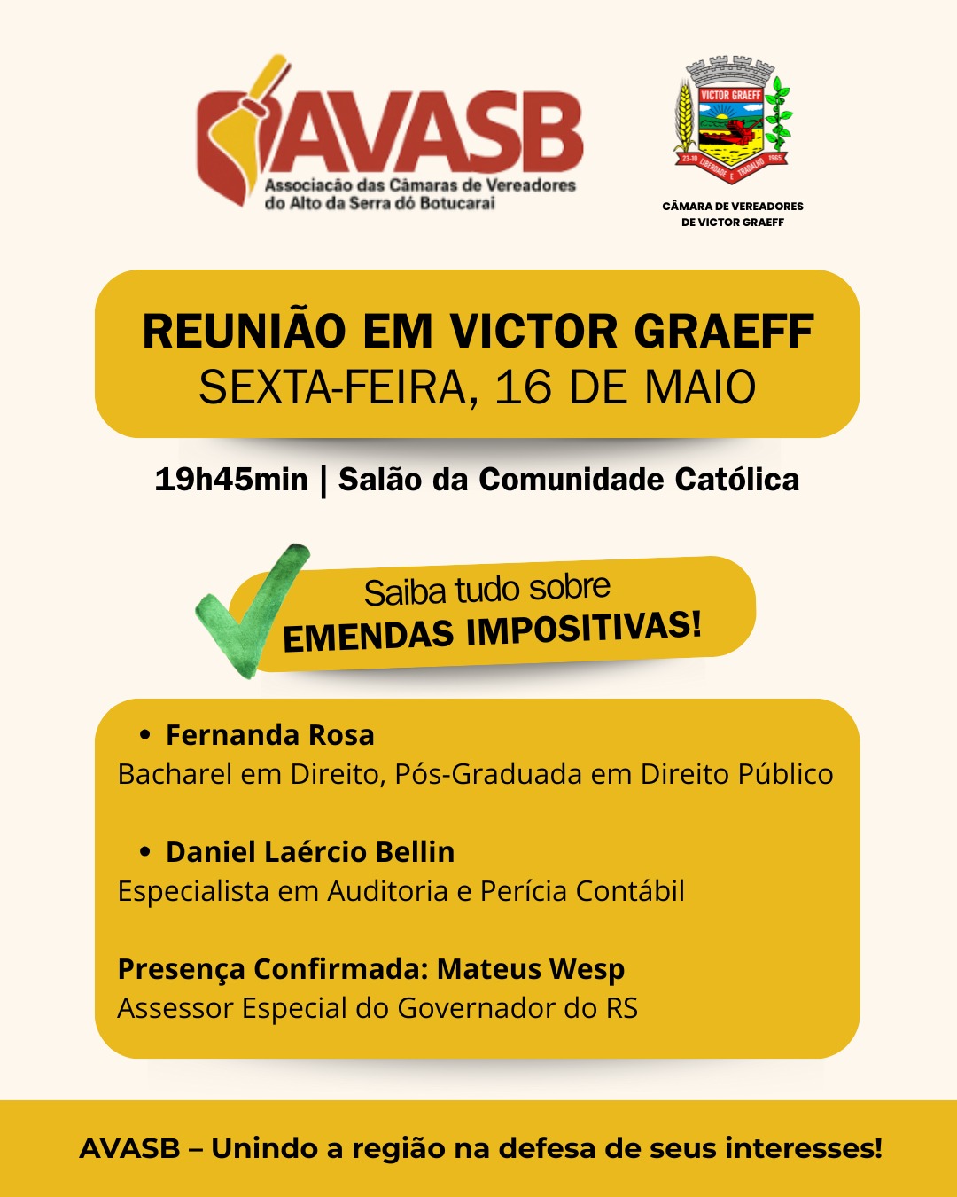 • Victor Graeff receberá reunião da Avasb nesta sexta (16)