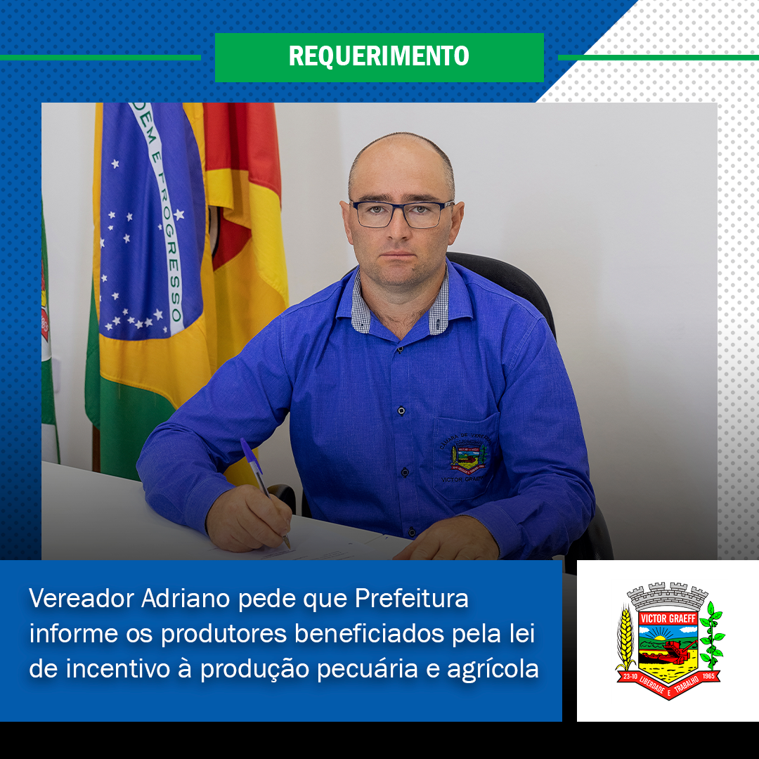 • Vereador Adriano pede que Prefeitura informe os produtores beneficiados pela lei de incentivo à produção pecuária e agrícola