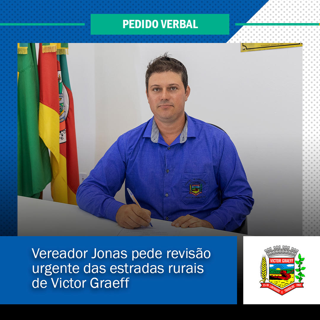 • Vereador Jonas pede revisão urgente das estradas rurais de Victor Graeff