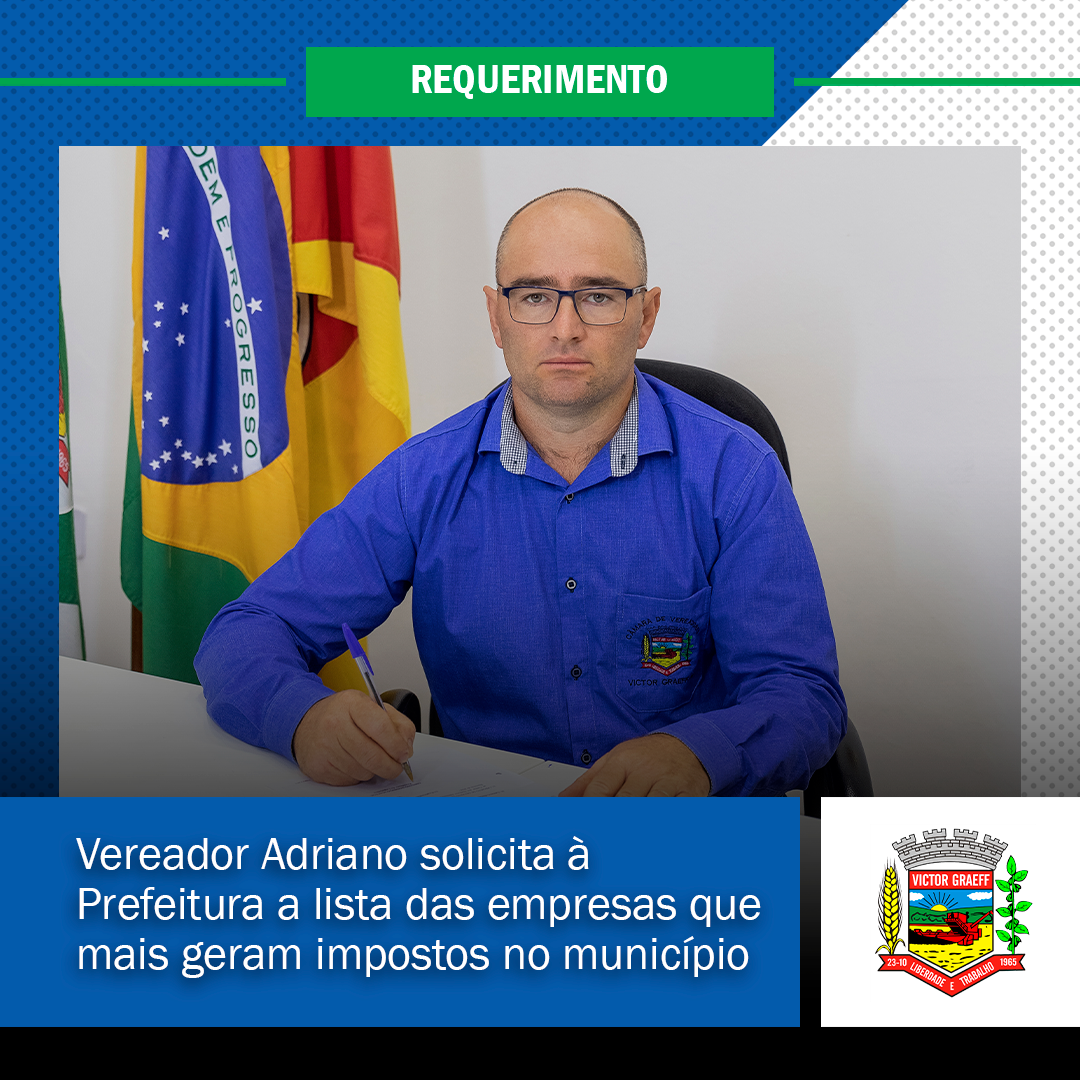 • Vereador Adriano solicita à Prefeitura a lista das empresas que mais geram impostos no município