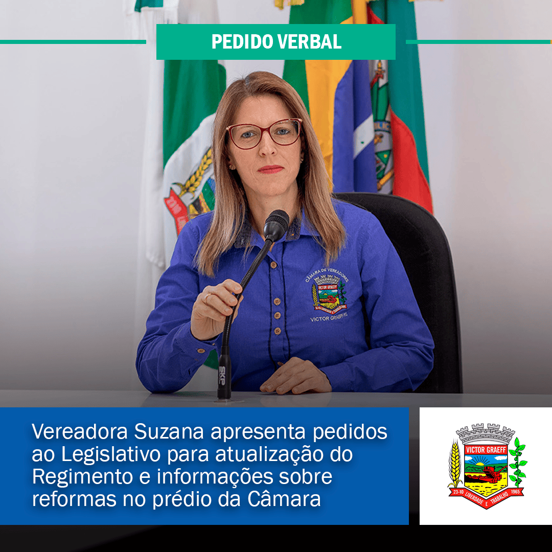 • Vereadora Suzana apresenta pedidos ao Legislativo para atualização do Regimento e informações sobre reformas no prédio da Câmara