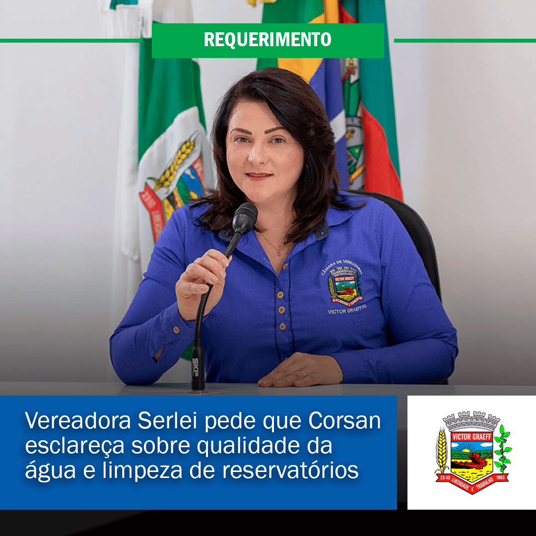 • Vereadora Serlei pede que Corsan esclareça sobre qualidade da água e limpeza de reservatórios