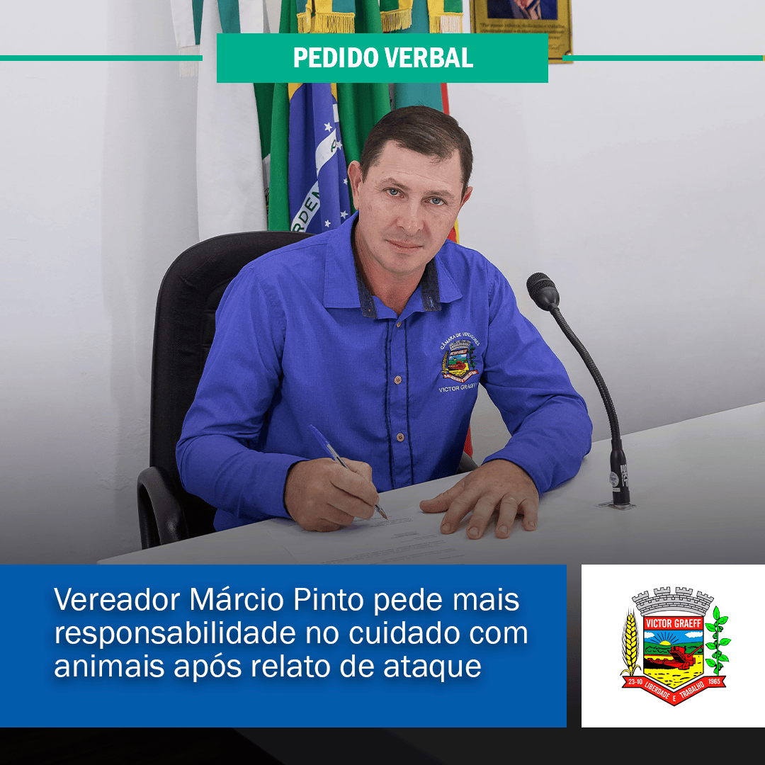 • Vereador Márcio Pinto pede mais responsabilidade no cuidado com animais após relato de ataque
