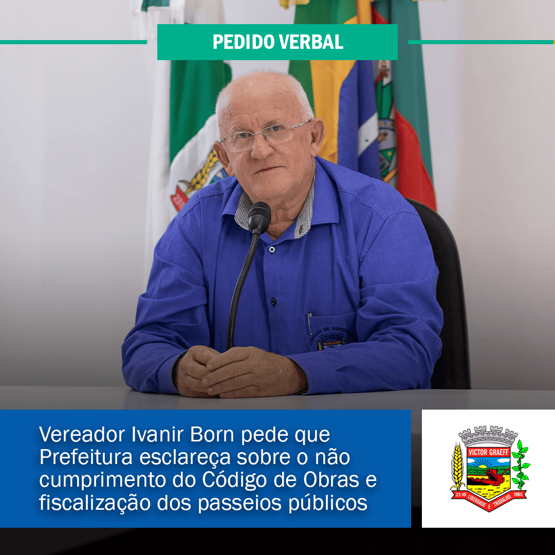 • Vereador Ivanir Born pede que Prefeitura esclareça sobre o não cumprimento do Código de Obras e fiscalização dos passeios públicos