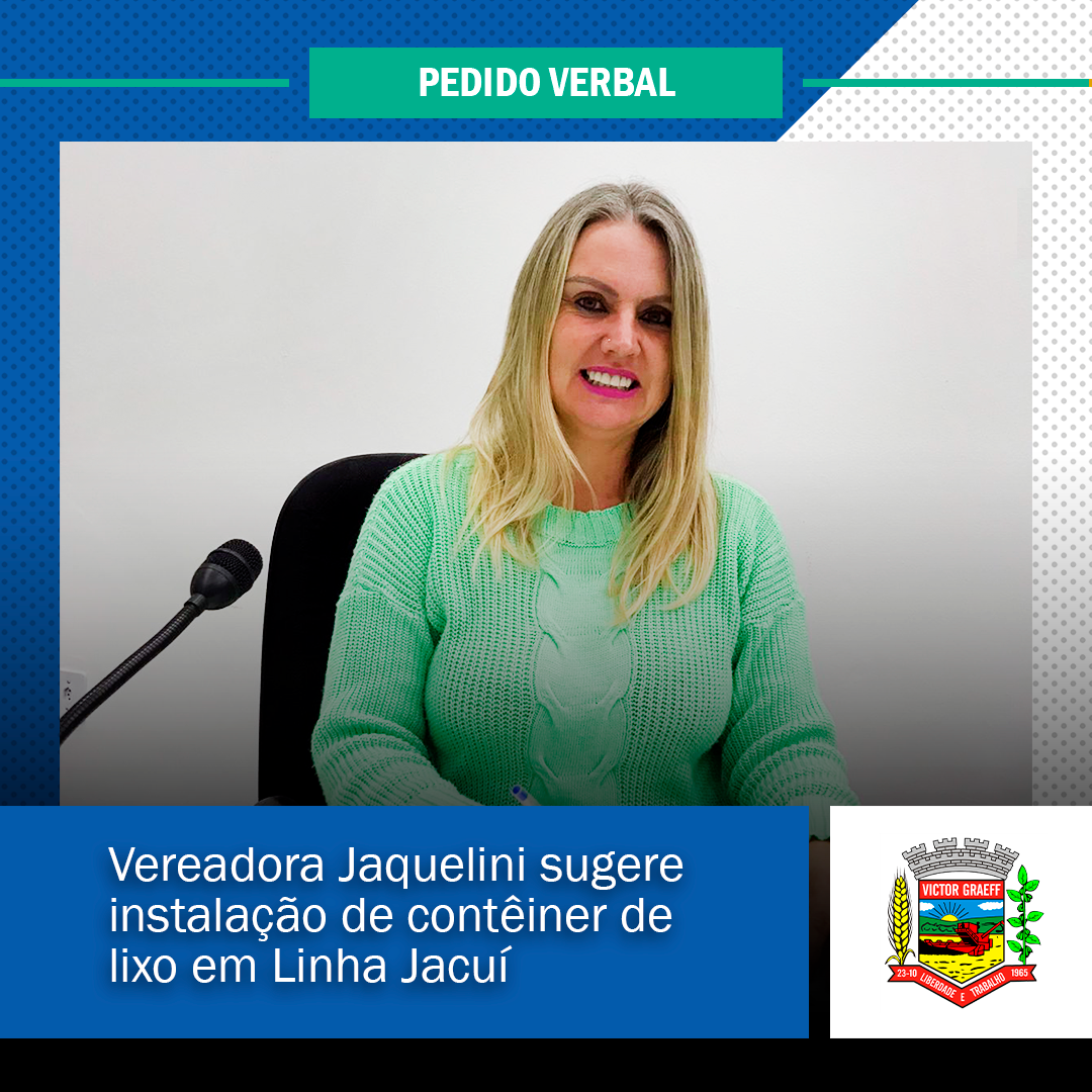 • Vereadora Jaquelini sugere instalação de contêiner de lixo em Linha Jacuí
