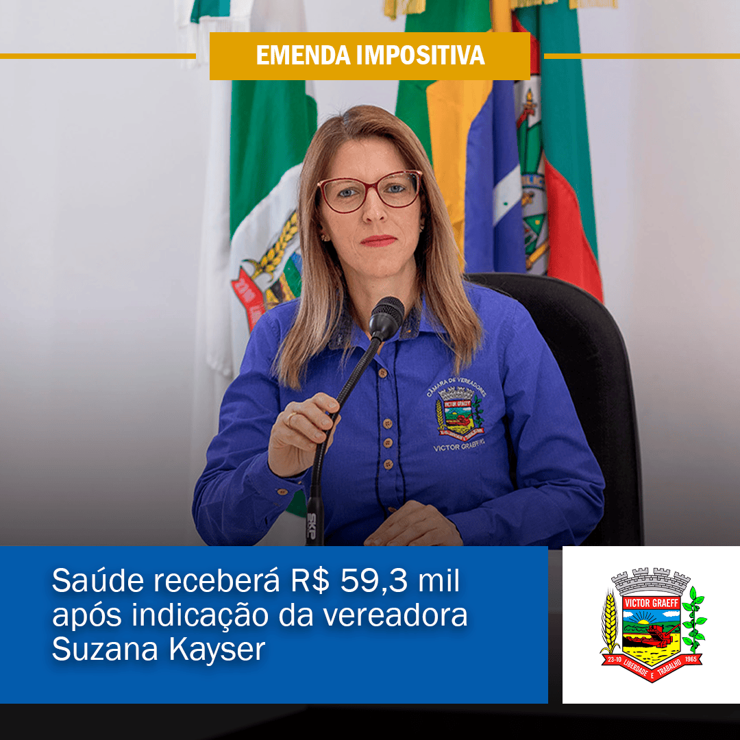 • Saúde receberá R$ 59,3 mil após indicação da vereadora Suzana Kayser