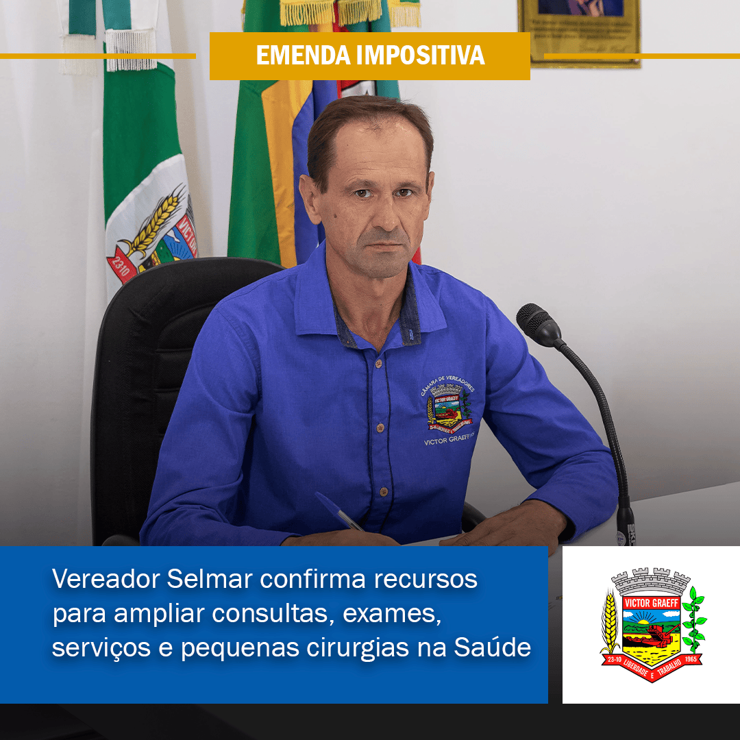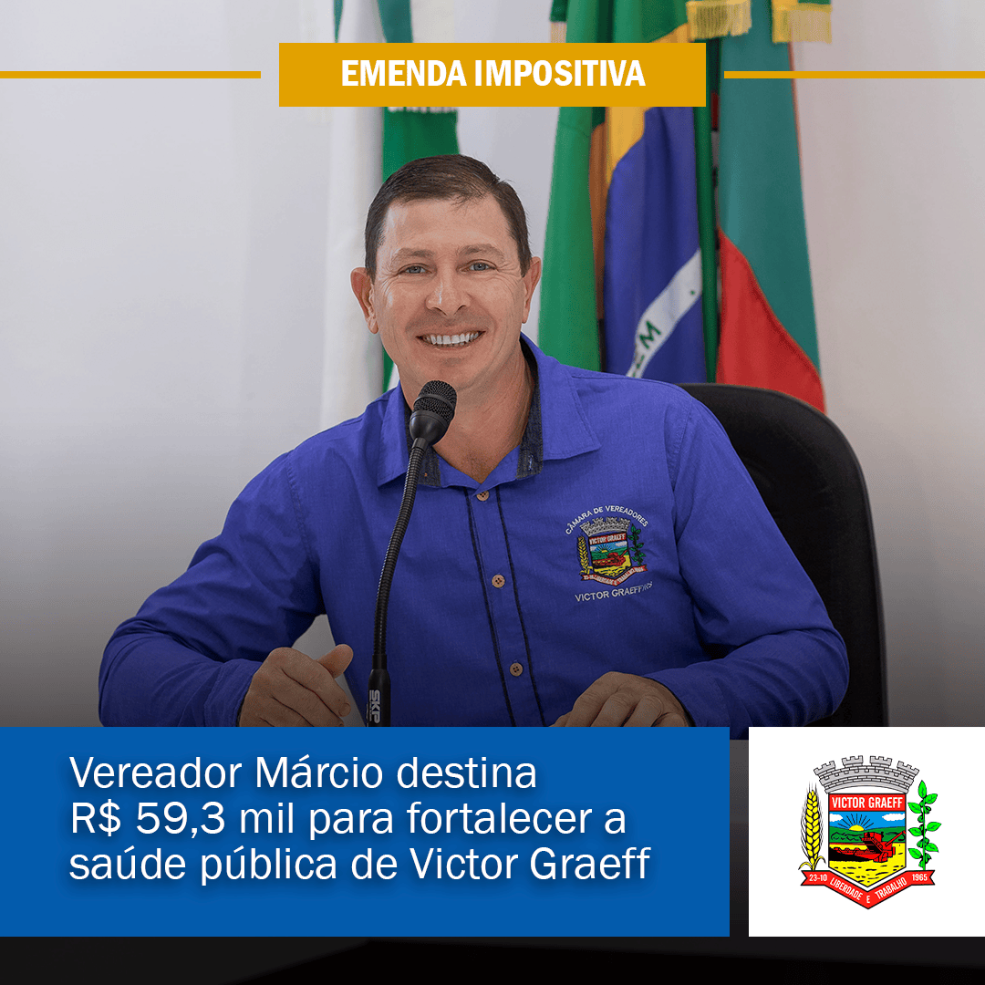 • Vereador Márcio destina R$ 59,3 mil para fortalecer a saúde pública de Victor Graeff