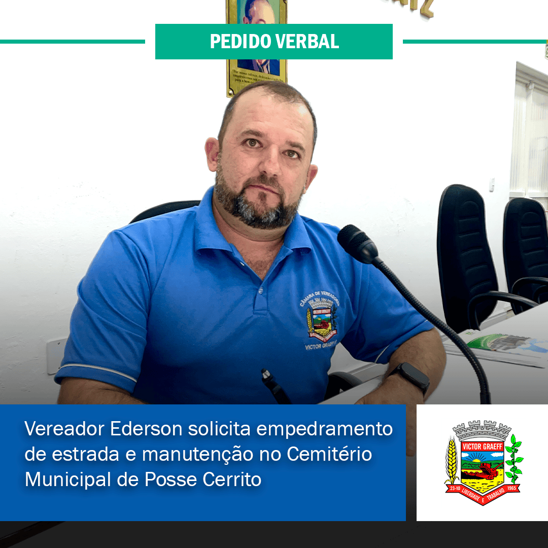 • Vereador Ederson solicita empedramento de estrada e manutenção no Cemitério Municipal de Posse Cerrito